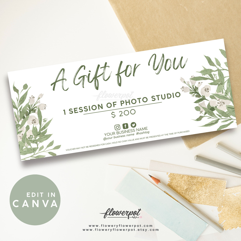 A Gift for You Template Printable, Small Business Gift Cards, Gift Voucher Coupon, Gift Certificate Canva, Client Gifts from Photographer